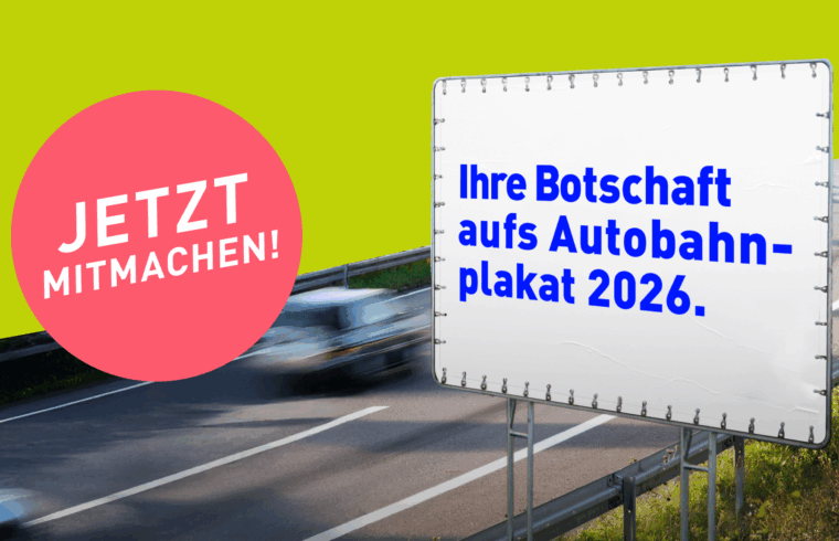Die Umfrageauswertung wird anschließend veröffentlicht und bildet zusammen mit den übermittelten Botschaften die Inspirationsgrundlage für die Entwicklung der Plakatmotive. In einer später folgenden zweiten Umfragephase können die Bürgerinnen und Bürger per Online-Voting über die fertig gestalteten Plakatmotive abstimmen, die ab Frühjahr 2026 an den Autobahnen hängen werden.