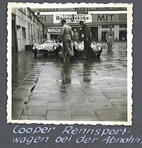 Die Bilder entwickelte ich selbst, zunächst nachts im Badezimmer und später in einem eigenen kleinen Labor im Keller unseres Hauses. Es waren schwarz-weiß-Bilder, die heute noch ihren Charm haben. Und dann hatte ich noch das Glück, einen der ‚großen Motorsportfotografen‘ am Nürburgring kennenzulernen. Es war der später berühmte Hans-Peter (H. P.) Seufert, der jahrzehntelang Chef-Fotograf beim Stuttgarter Motor-Presse-Verlag war. Hans-Peter Seufert machte Ausschnittvergrößerungen aus meinen Bildern und da kamen tolle Bildausschnitte zustande. Auf den Original-Fotos waren die Rennwagen und -motorräder oft kaum zu erkennen, dagegen auf den Bildausschnitten hervorragend. Für die Hochglanzabzüge im Format 12 x 18 cm habe ich bei H. P. Seufert nur den Selbstkostenpreis bezahlt. Sie sind heute wertvoller Bestandteil meines mittlerweile riesigen Fotoarchivs. Leider sind die Verbindungen zu H. P. Seufert im Laufe der Jahre weniger geworden, zumal mein ‚ehemaliger Fotonachbar‘ zum absoluten Star unter den Motorsportfotografen aufgestiegen war.